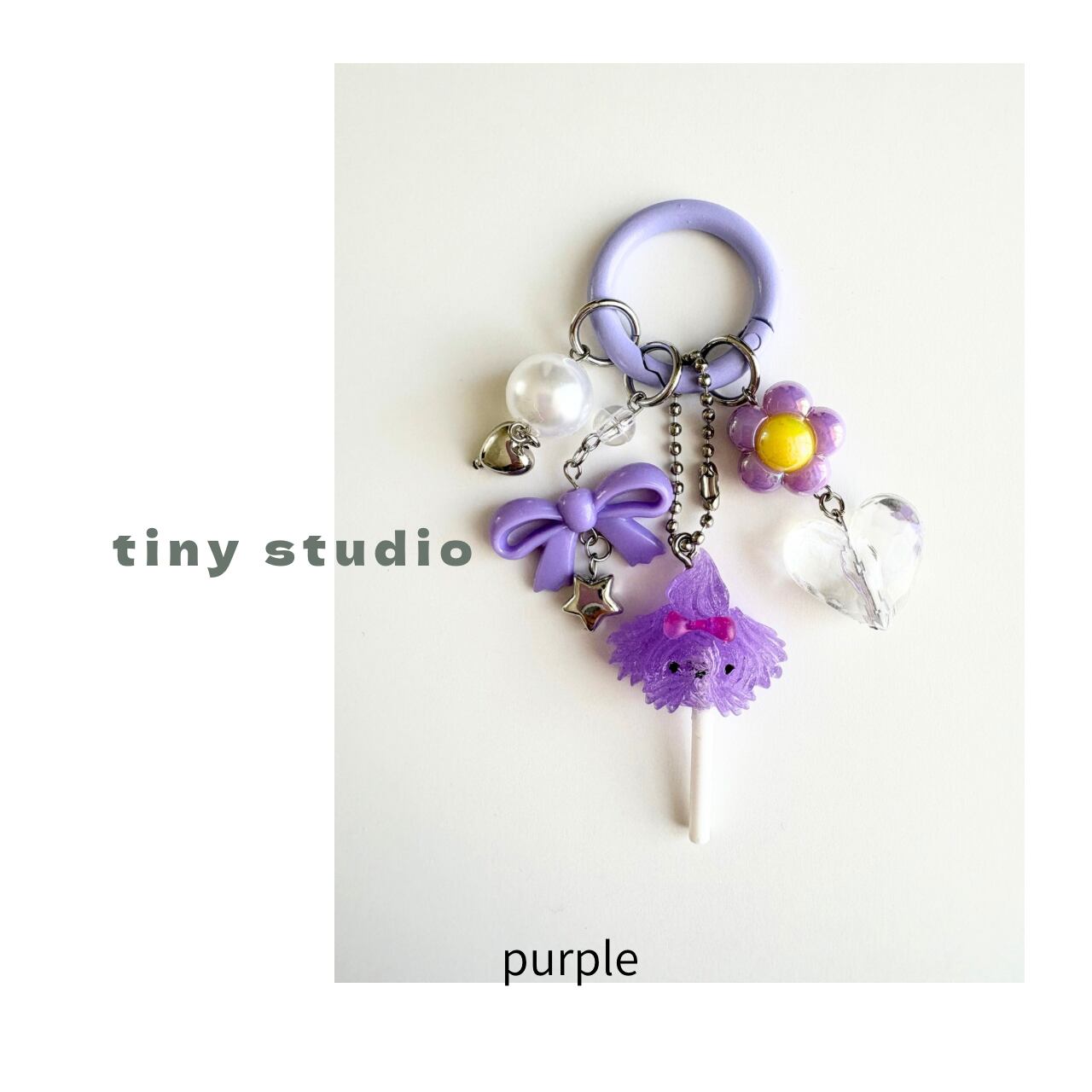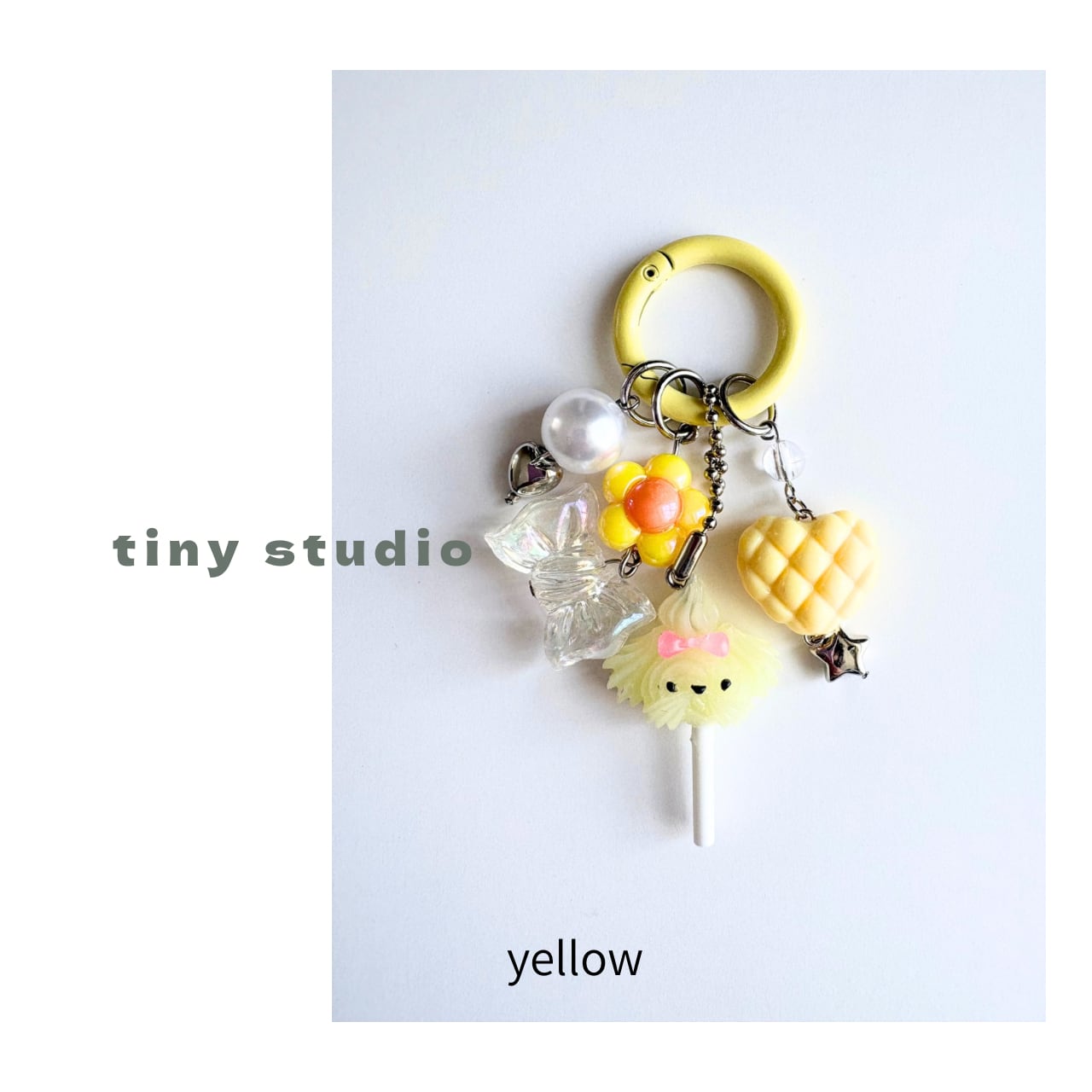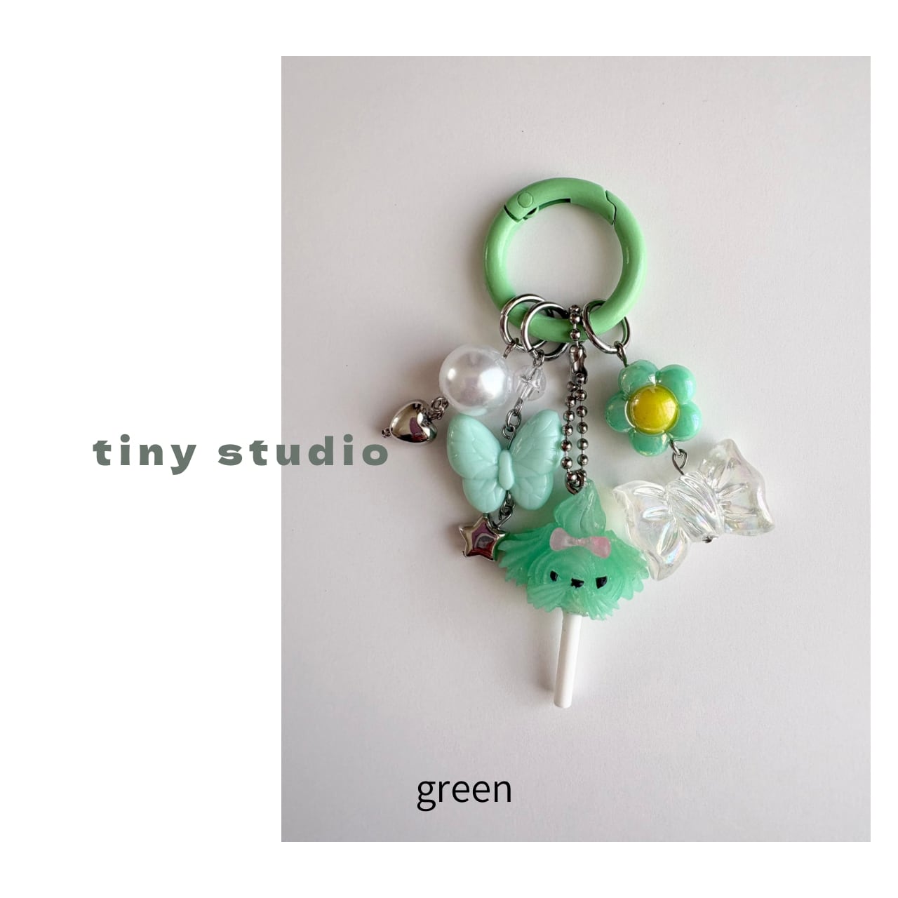 ロリポップのモチーフが特徴のじゃらじゃらかわいい1点もののチャームです。